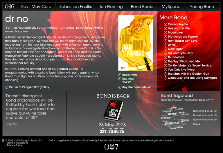 "It's fun, eye-catching, yet has all the features you'd expect and want on a 007 site. Marketing the Penguin books well."